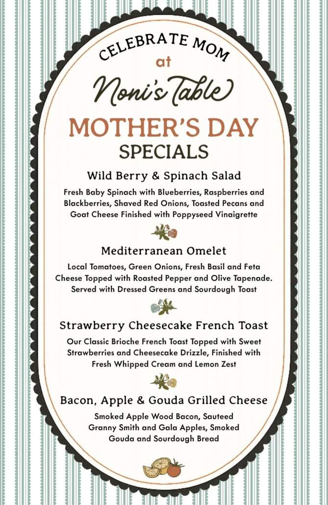 This Mother’s Day, join us at Noni’s Table for a thoughtfully crafted menu, cozy café favorites, and relaxing views overlooking the greens. Make your reservations here: bit.ly/48UgdQt.