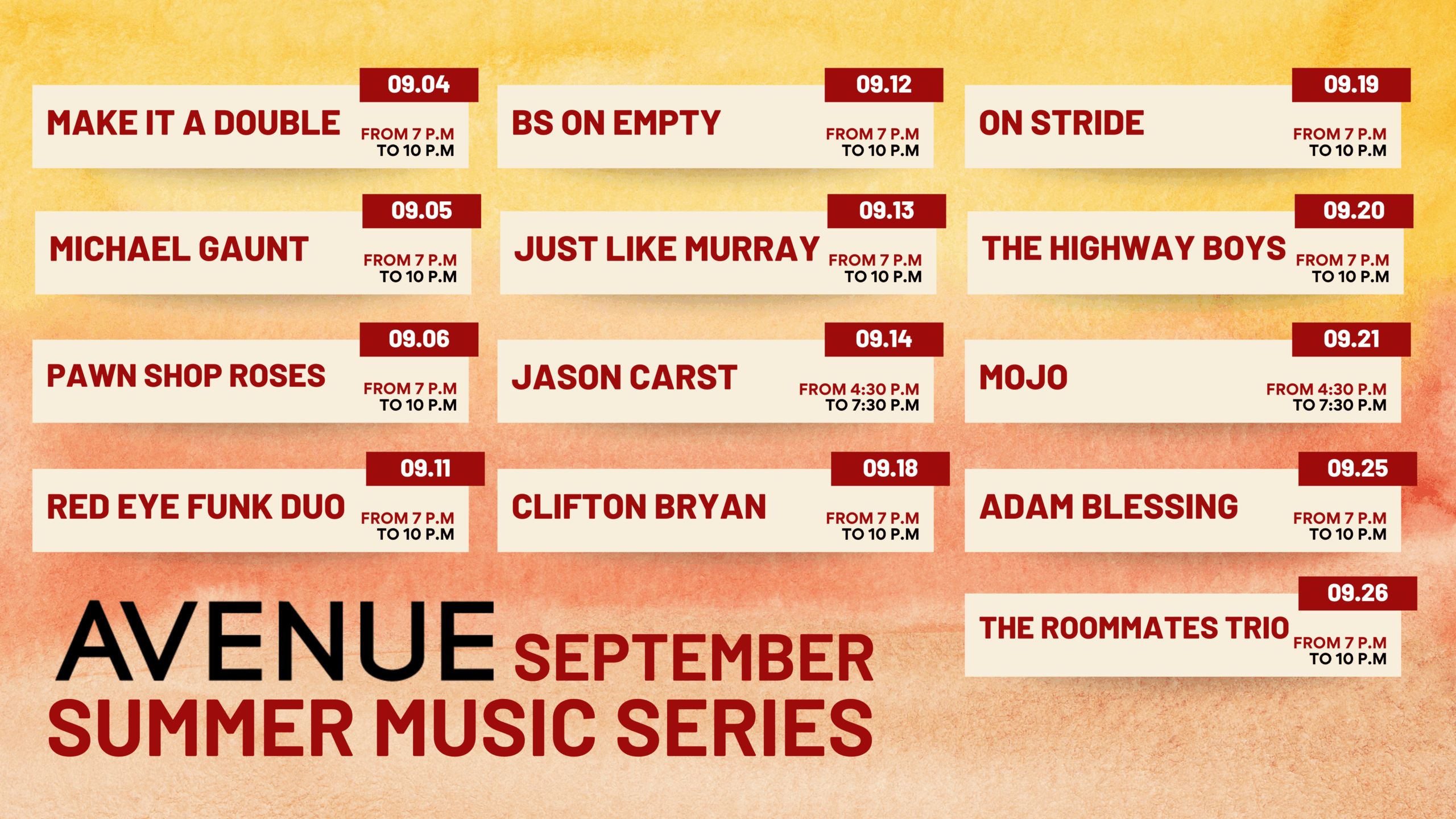 🕥 Time: 7 PM – 10 PM (Sundays are 4:30 to 7:30)